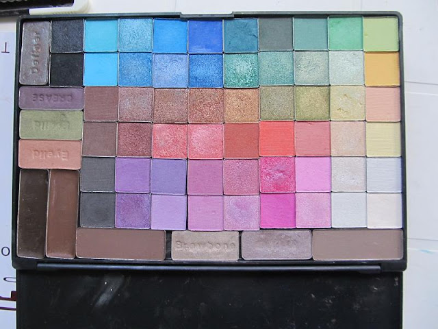 Τελικά όμως αποφάσισα να τοποθετήσω τις μπλε αλλού μιας και δεν χρησιμοποιώ συχνά μπλε όταν βάφομαι και στη θεση τους έβαλα κάποιες ιαπωνικές σκιές και κάποιες από μία παλέτα της Wet'n'Wild που δεν μου άρεσε αρκετά για να της αφιερώσω χωριστό θέμα.